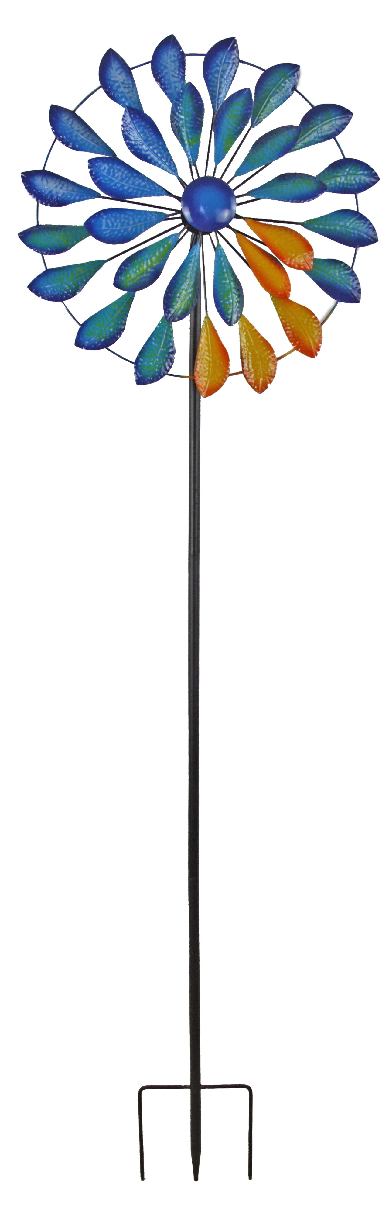 Verleihen Sie Ihrem Garten oder Außenbereich einen Hauch von lebendiger Farbenpracht mit diesem einzigartigen Windspiel im Blätter-Design! Die kunstvoll bemalten Blätter in Blau, Grün und Orange erwecken das Gefühl von frischer Natur und bringen Farbe in jedes Ambiente. Der zentrale blaue Ball sorgt für einen eleganten Kontrast, während sich die Blätter bei jeder Windböe sanft drehen und für ein beruhigendes Schauspiel sorgen.