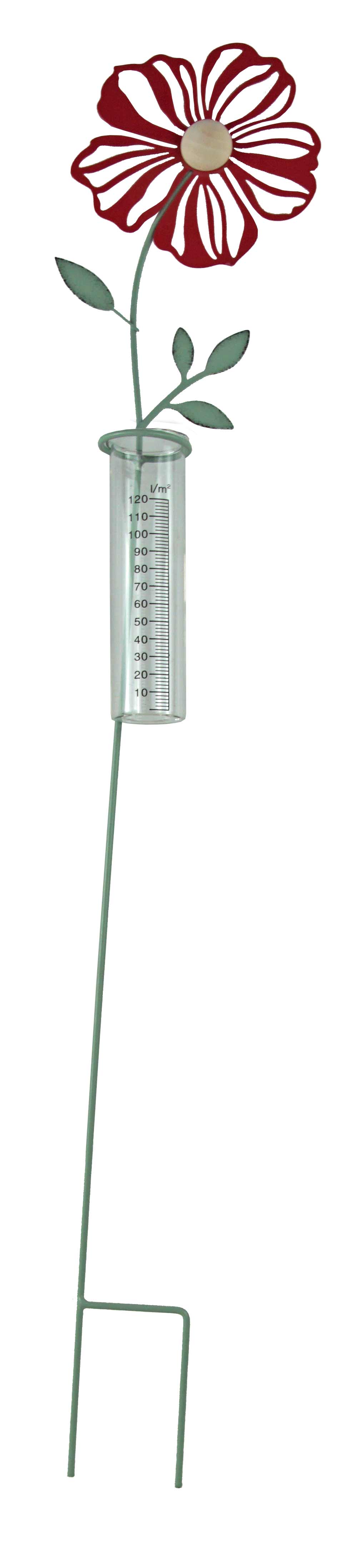 Dieser dekorative Regenmesser in Blumenform ist ein schöner und praktischer Blickfang für den Garten. Die leuchtend rote Blüte mit einer Holzkugel in der Mitte setzt farbige Akzente, während der pastellgrüne Stab und die filigranen Blätter für eine harmonische Optik sorgen. Das integrierte Glas misst zuverlässig die Niederschlagsmenge und ist leicht ablesbar. Der Regenmesser lässt sich einfach in Beete oder Rasenflächen stecken.