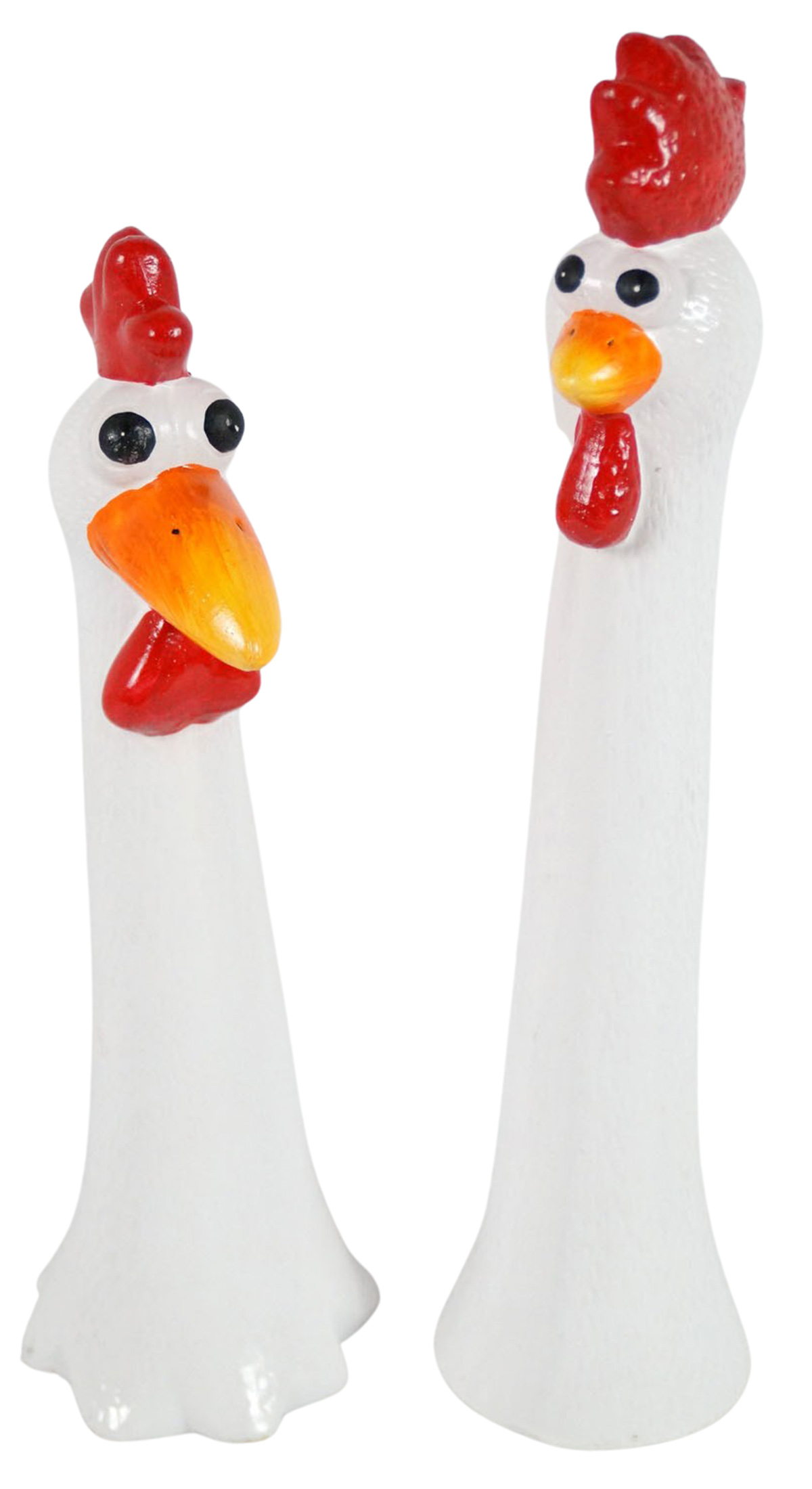 Das 2-teilige Set umfasst zwei verschiedene verrückte Hühner.