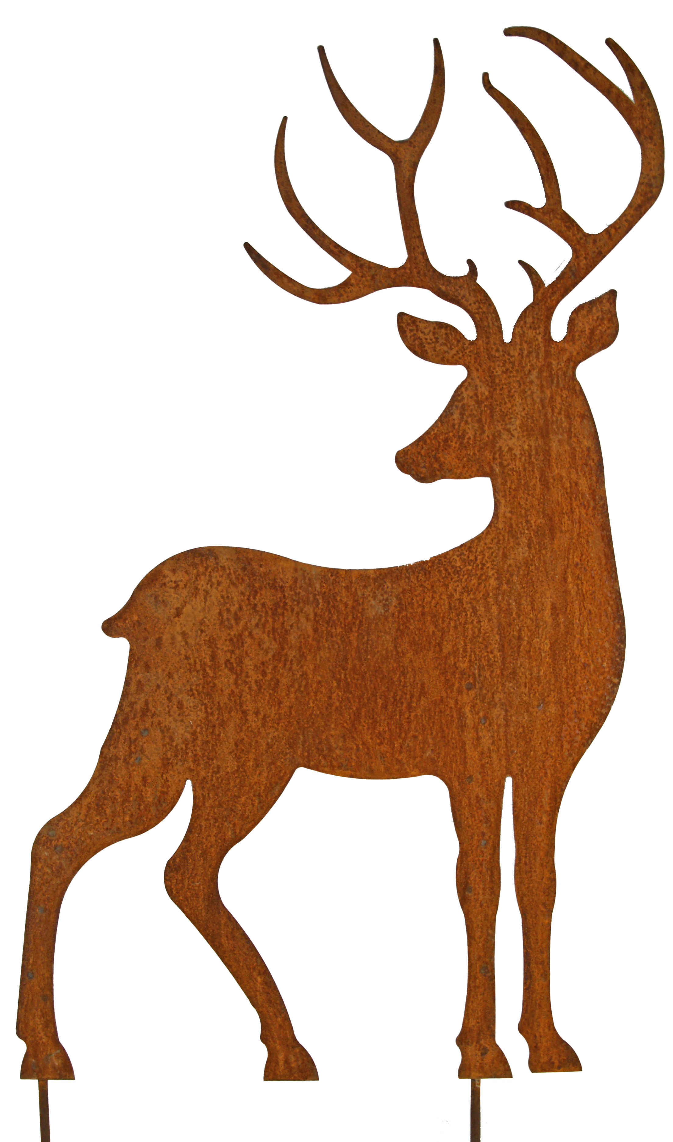 Jeder Blick auf den filigran gearbeiteten Hirsch erinnert an ruhige Waldspaziergänge, an klare Wintermorgen und an die Schönheit wilder Landschaften. Durch die warme Rostfarbe fügt er sich harmonisch in jede Umgebung ein – ob romantisch zwischen Rosen, modern im Kiesbeet oder als Blickfang auf der Terrasse.