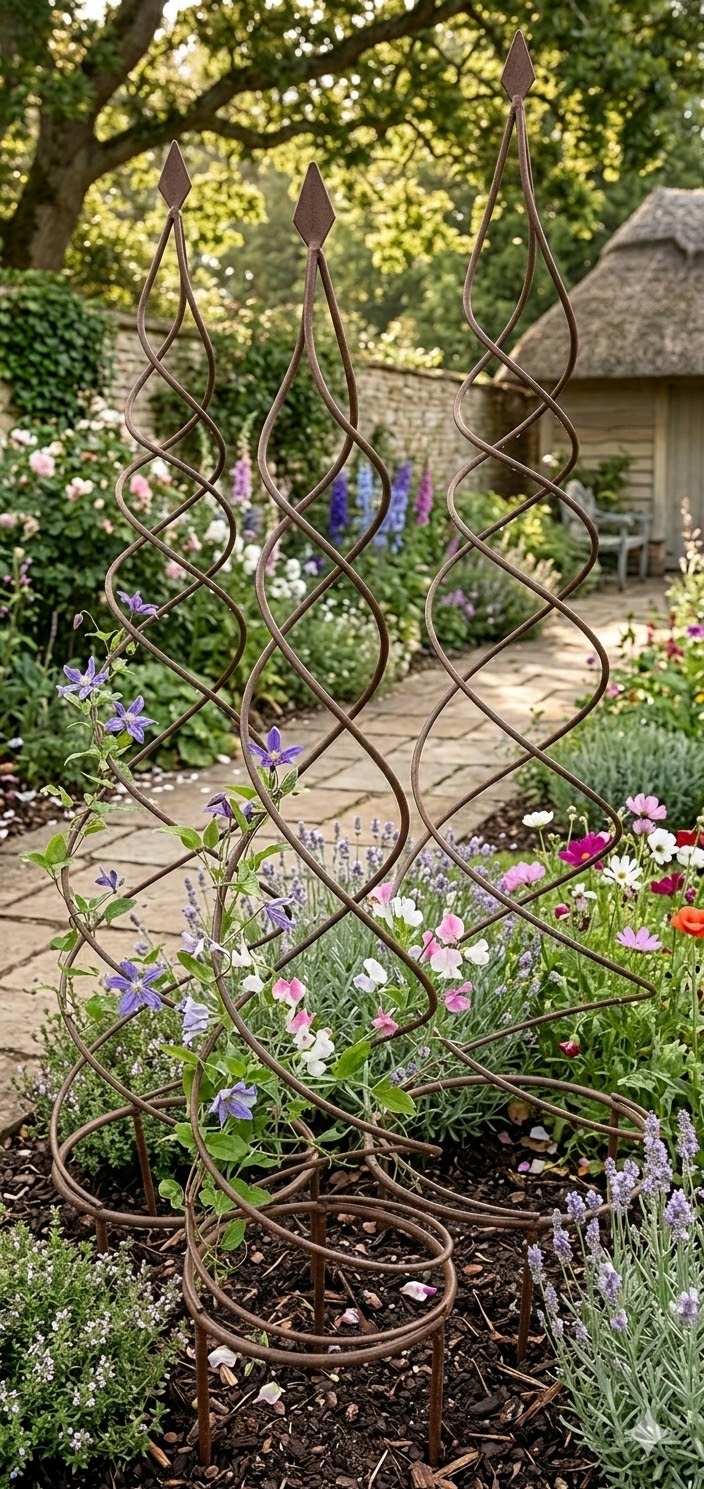 Ob im Blumenbeet, im Vorgarten oder im großen Pflanztopf – der Rankgitter Spiralturm ist flexibel einsetzbar und unterstützt zahlreiche Pflanzenarten: