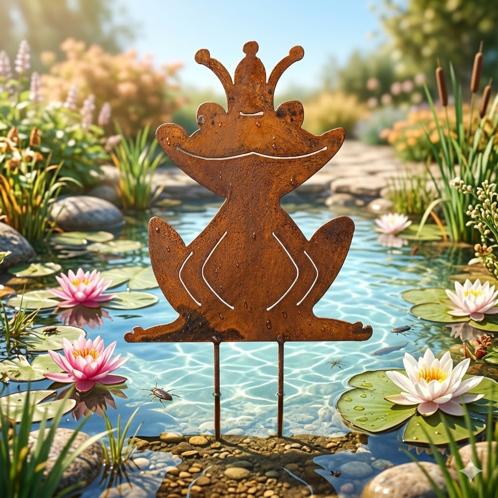 Die kunstvolle Gestaltung des Beetsteckers bereichert Ihren Außenbereich auf elegante Weise. Die mühelose Platzierung gelingt dank der stabilen Erdspieße spielend leicht, während der quirlige Froschkönig sowohl Blumenbeete als auch Ihren Blumentopf auf wundervolle Art ergänzt.