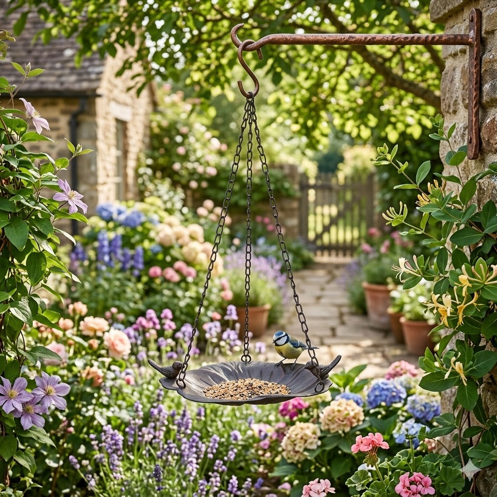Bringen Sie ein Stück Natur in Ihren Garten oder auf Ihren Balkon mit dieser eleganten, hängenden Vogeltränke in stilvoller Blütenform. Die feine Schwarz-Bronze-Farbgebung verleiht der Tränke einen edlen, zeitlosen Look, der sich harmonisch in jede Umgebung einfügt.